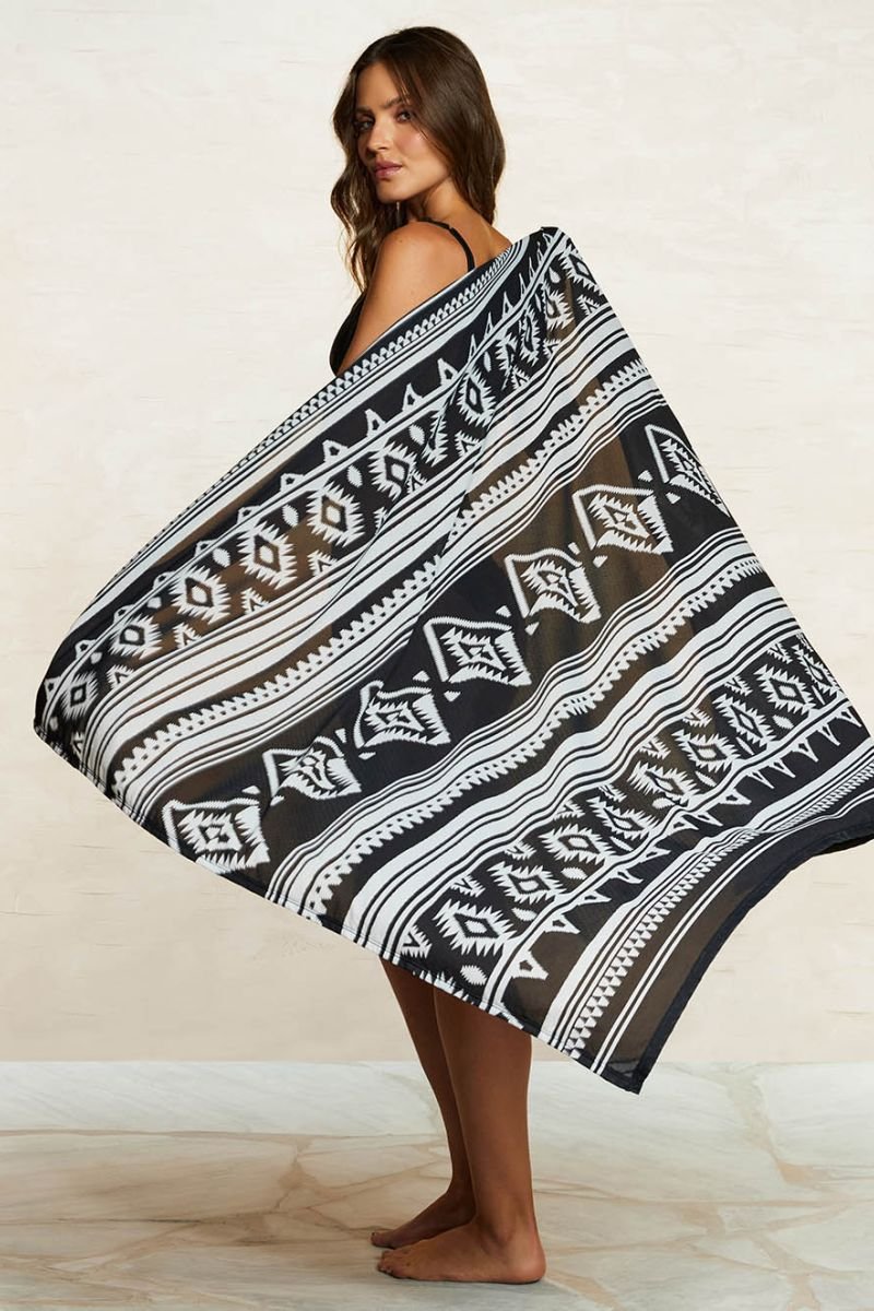 Canga estampada. Pode ser usada de diversas maneiras no corpo ou na cintura.