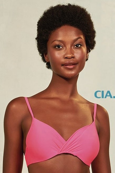 Top meia taça liso. O modelo possui decote transpassado, bojo removível, aro, alças ajustáveis e amarração nas costas.
